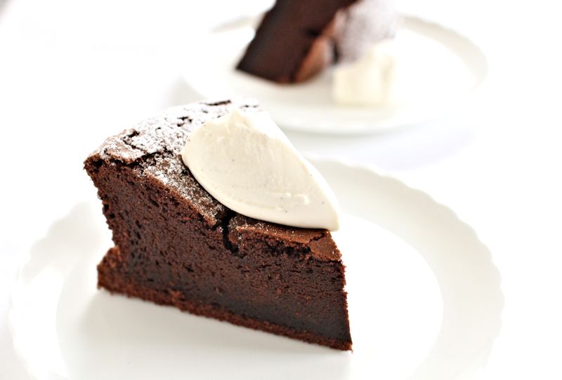 クラシックガトーショコラは泡立てた卵白を小麦粉の配合が少ないチョコレート生地に混ぜ合わせて作る濃厚な焼き菓子です。レッスンでは材料を混ぜ合わていくタイミングなどを理解できます。(φ18㎝)**画像のクリームは含みません